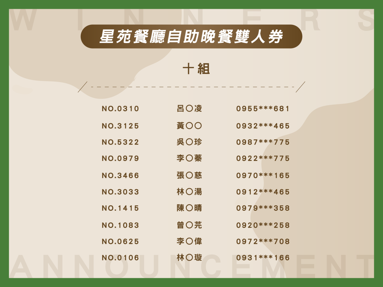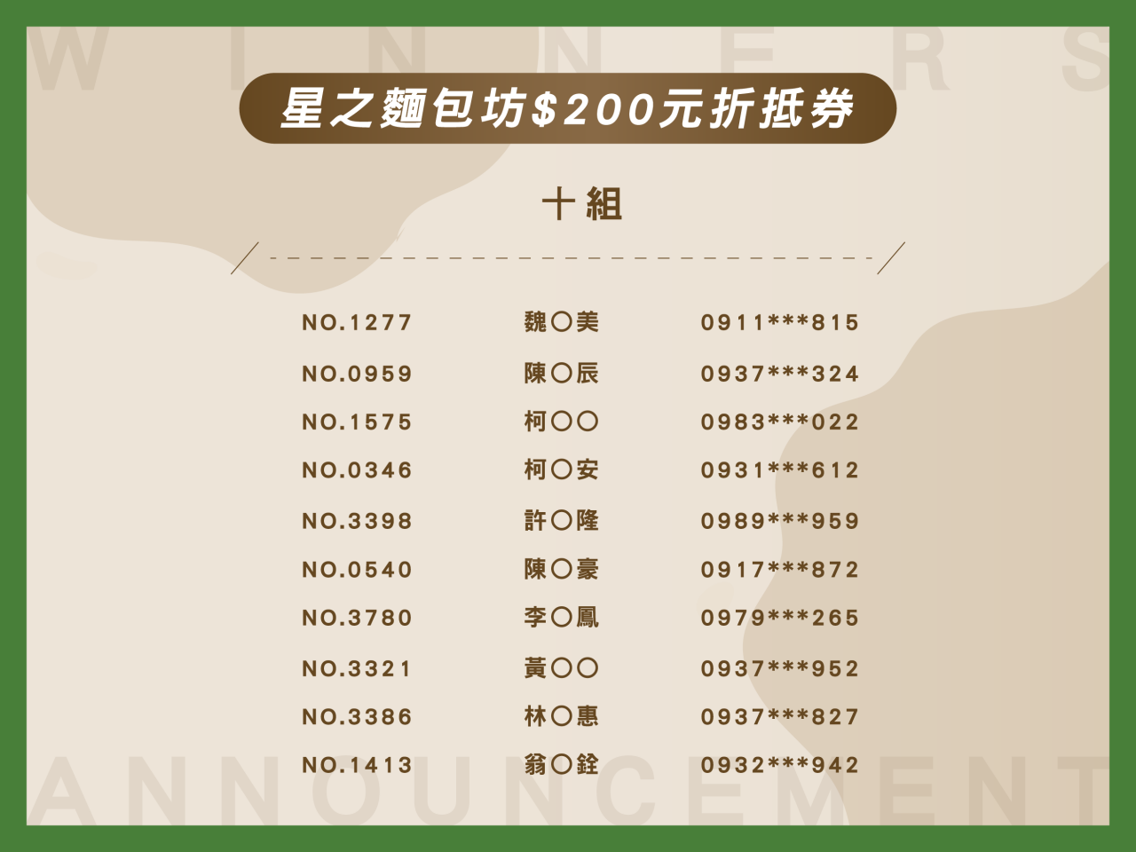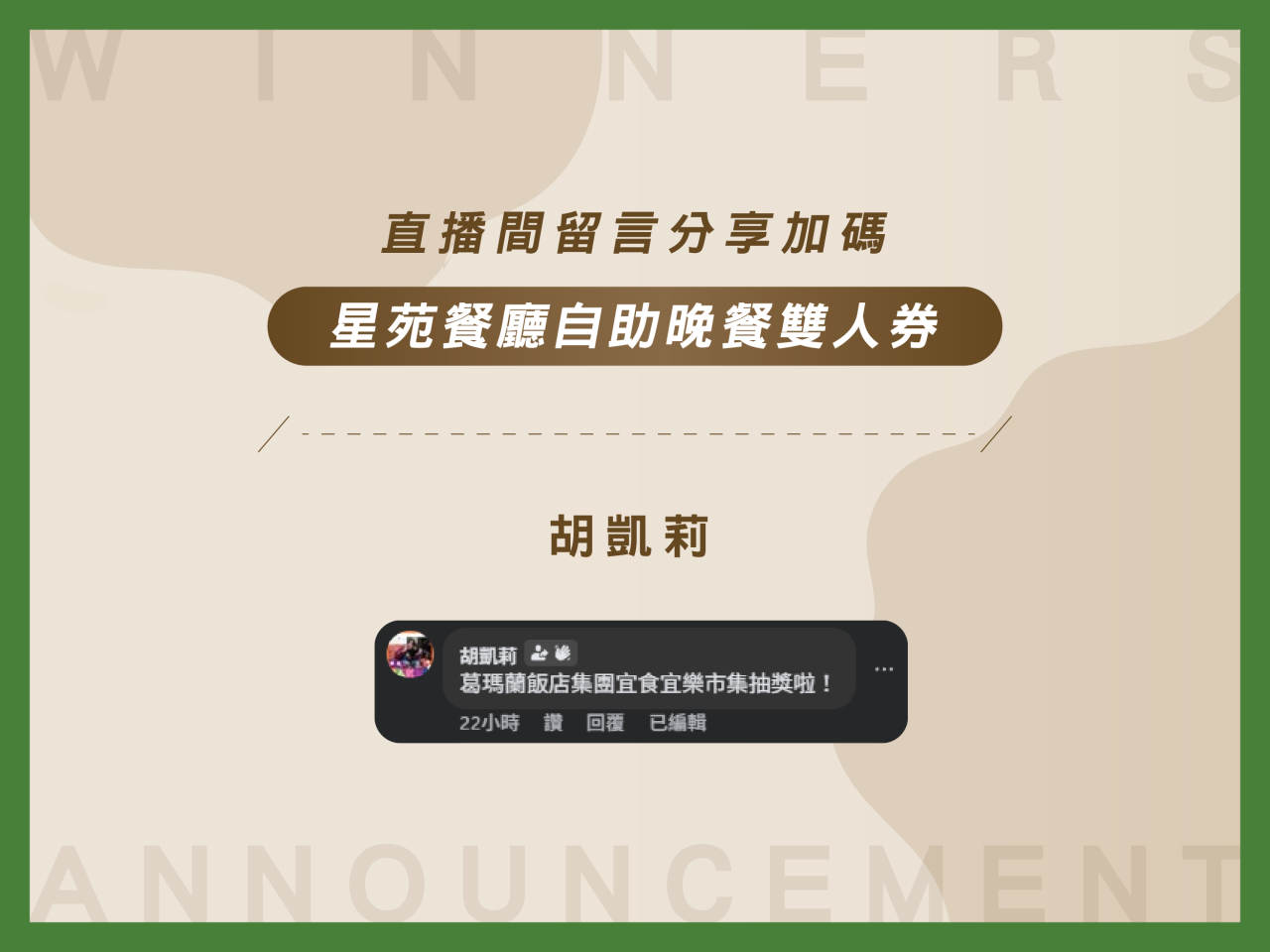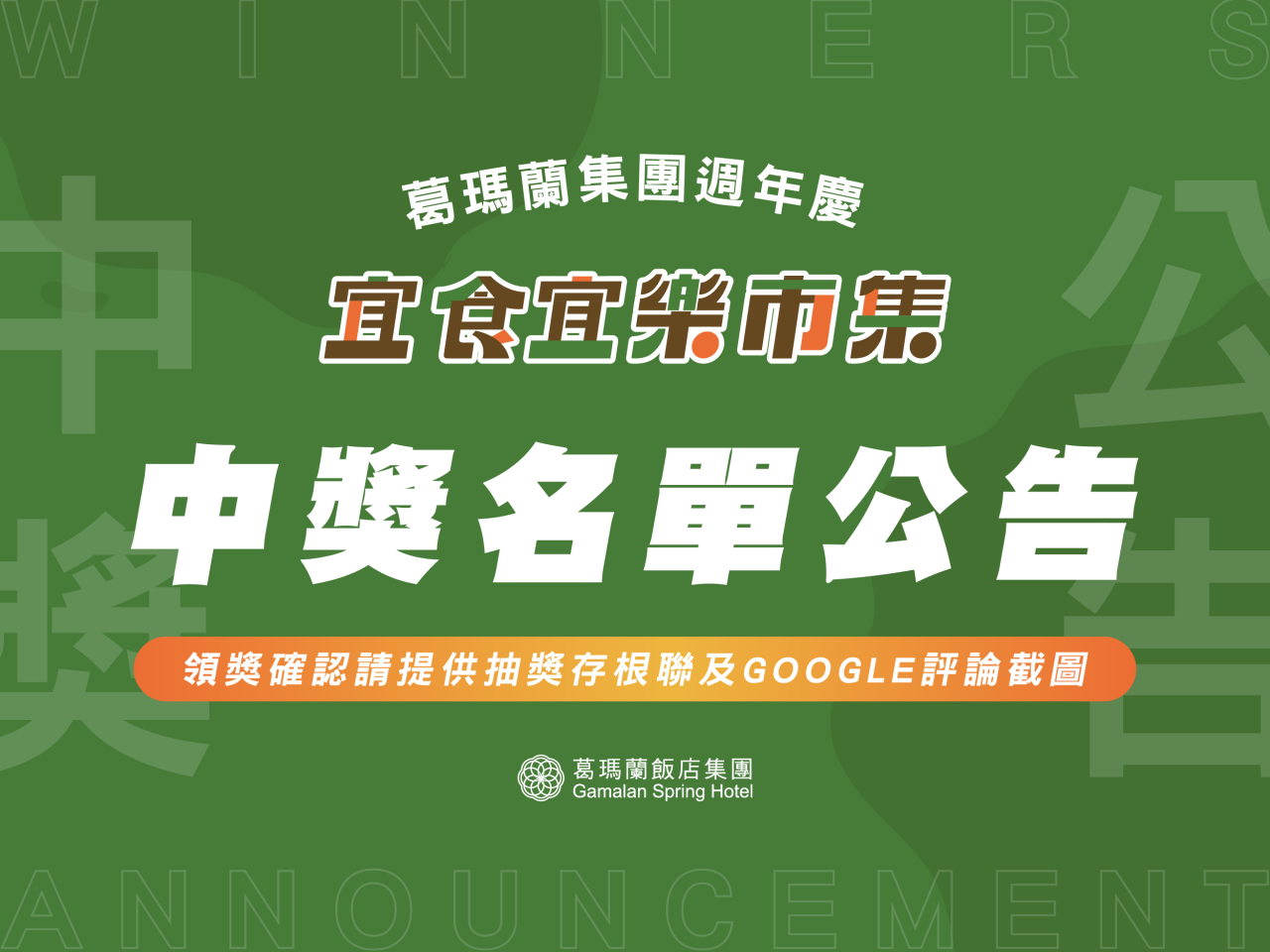公告|週年慶宜食宜樂市集中獎名單